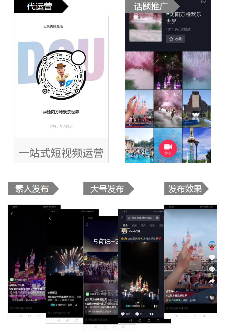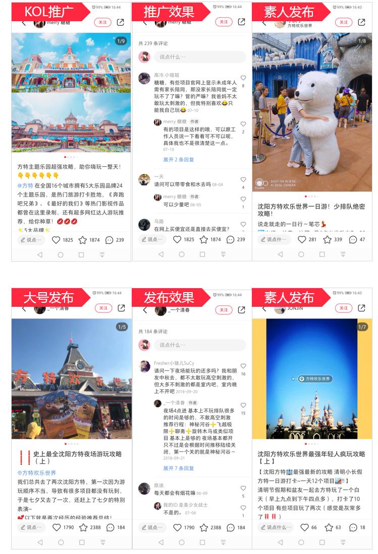 - ? 推廣效果 : 整體曝光量超過(guò)500萬(wàn),總互動(dòng)量超過(guò)44.9萬(wàn),雙微平臺(tái)新增粉絲超過(guò)2萬(wàn)名,有效提升目標(biāo)人群赴沈陽(yáng)方特歡樂(lè)世界意愿并積累了目標(biāo)受眾。