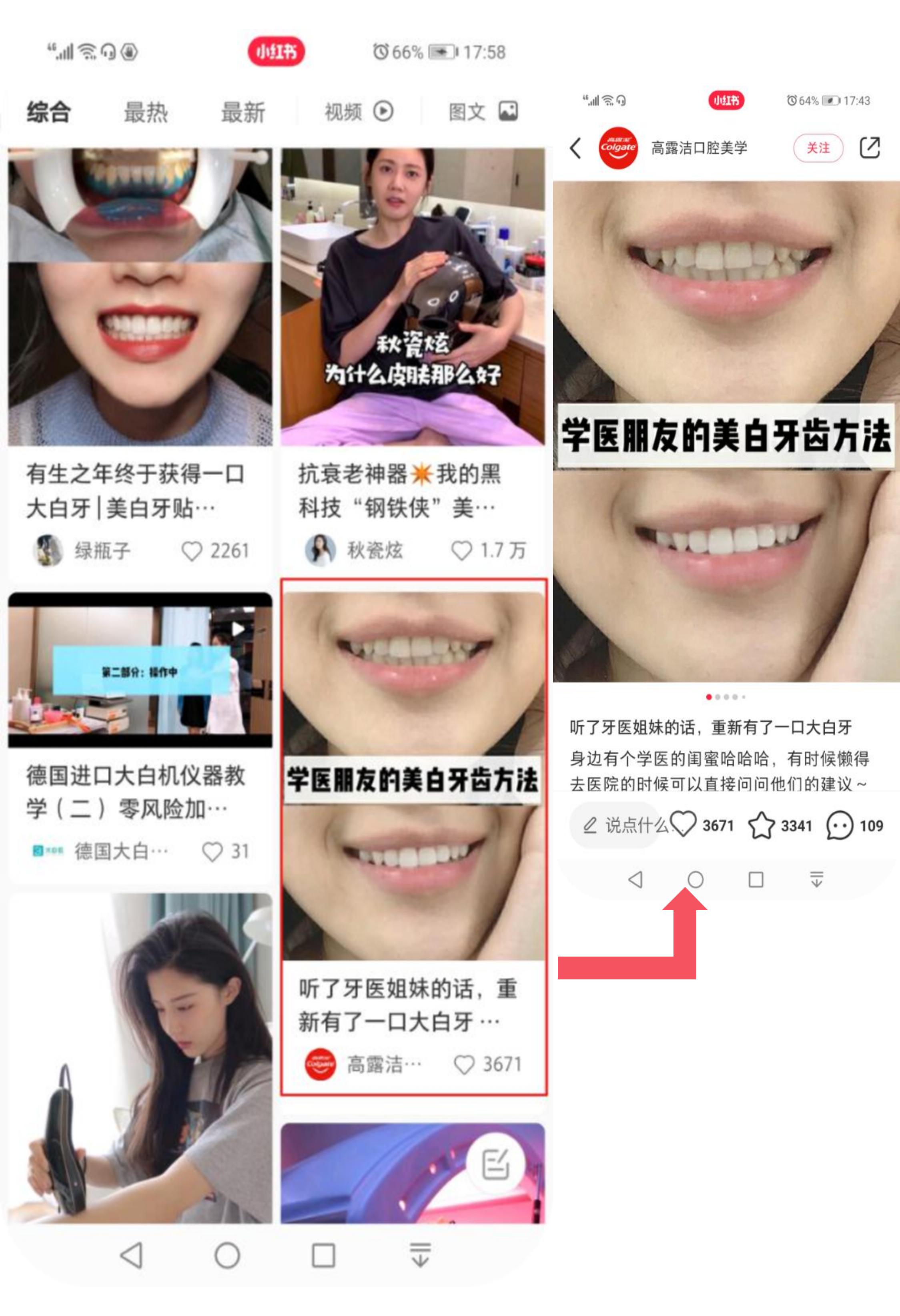 - ? 營銷策略 : 從用戶痛點出發(fā)撰寫內容,素人鋪設品牌口碑產(chǎn)品聲量,中腰部達人種草,頭部達人形成領袖意見,實現(xiàn)帶貨,同時植入【高露潔美白儀】搜索關鍵詞,引 導用戶到天貓搜索促成轉化。