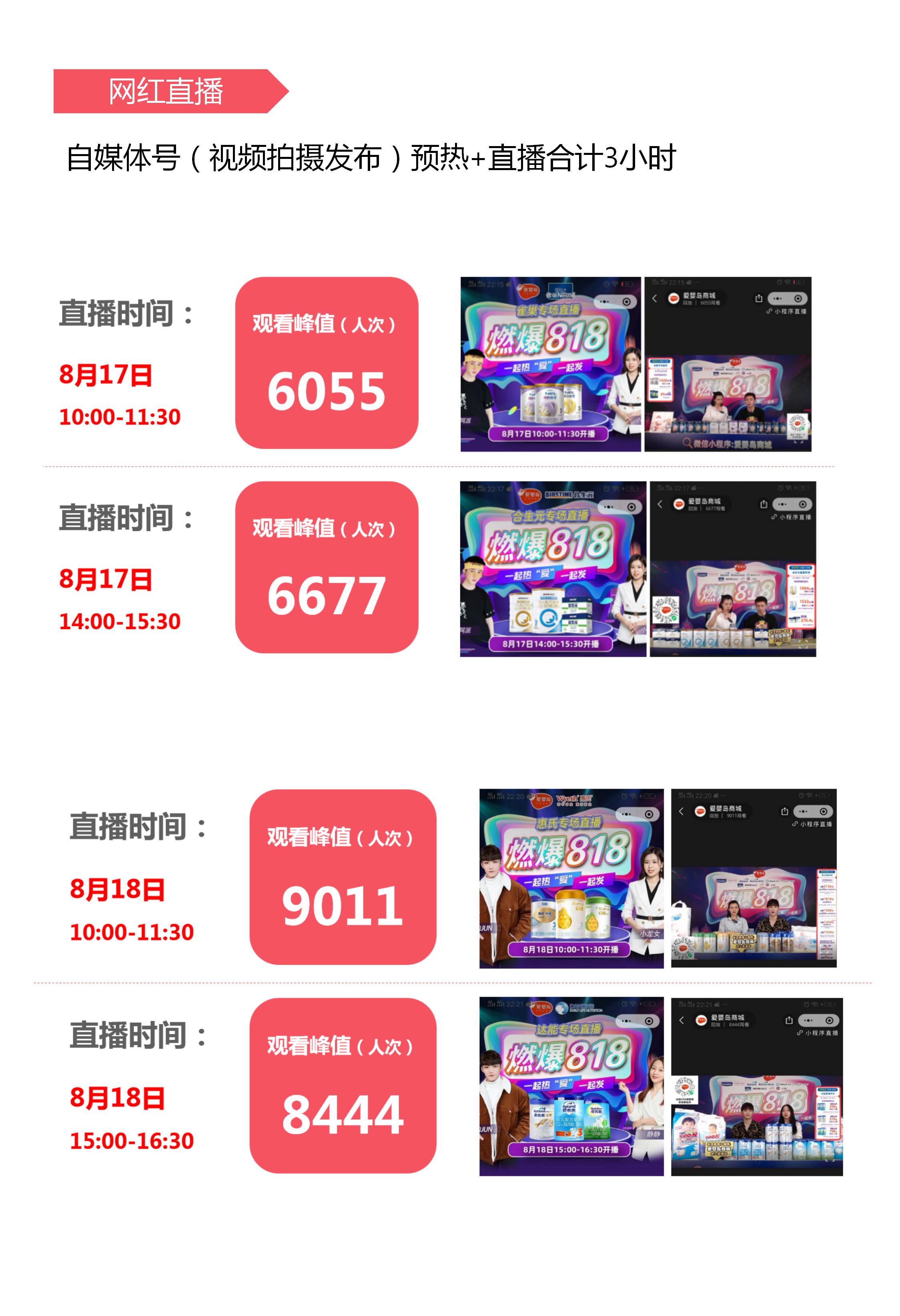 - ? 推廣效果 : 內(nèi)容曝光522534人次,朋友圈+社區(qū)轉(zhuǎn)發(fā)曝光370244人次,朋友圈廣告曝光122103人次,網(wǎng)紅直播曝光人次30187,后續(xù)泛網(wǎng)絡(luò)營銷曝光千萬人次。