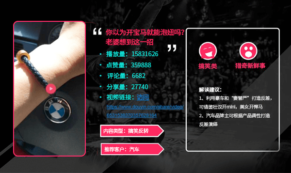 更原生:全屏視頻信息流是在第4位出現(xiàn),能夠讓短視頻范兒創(chuàng)意展示; 更前置:轉(zhuǎn)化按鈕在用戶的第一視覺入口展示,便捷跳轉(zhuǎn)減少流失; 高互動(dòng):可點(diǎn)贊、轉(zhuǎn)發(fā)、評論豐富評論提升用戶品牌好感度;